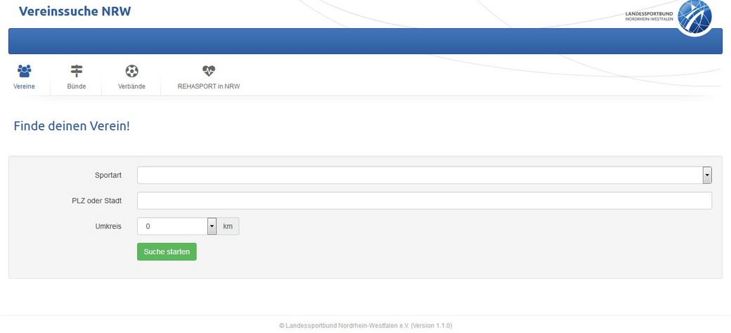 Hier können Sie Ihren Wohnort eingeben und eine Sportart und dann nach Sportvereinen sowie angebotenen Sportarten in Ihrem Umfeld suchen.